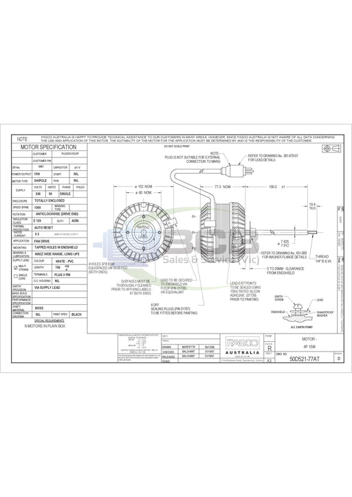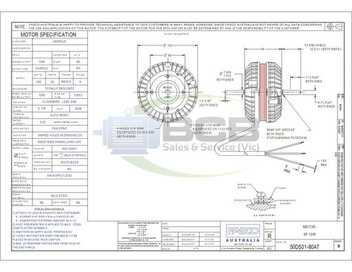 BCB Sales & Service (Vic)Low stockFasco 50D501-81A 240V 13 Watts 4Pole (1300rpm) Refrigeration Motor Hub Drive, Single Shaft, Single Speed 12 Months Warranty FREE SHIPPING ON THIS ...