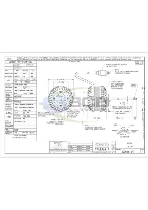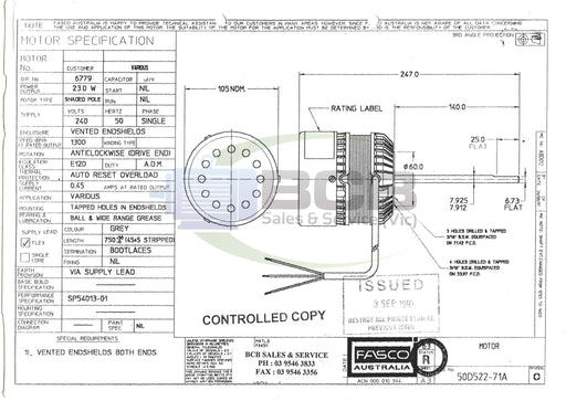 BCB Sales & Service (Vic)Low stockPLEASE PHONE OR EMAIL REGARDING STOCK STATUS Fasco 50D522-71A 240V 23 Watts 4Pole (1300rpm) Refrigeration MotorSingle Shaft, 5/16" 140mm Long, Tota...