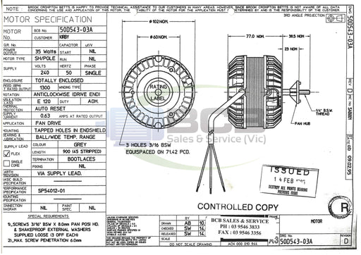 BCB Sales & Service (Vic)Low stockFasco 50D543-03A 240V 35 Watts 4Pole (1300rpm) Refrigeration MotorHub Drive, Single Shaft 12 Months Warranty FREE SHIPPING ON THIS PRODUCT Click H...