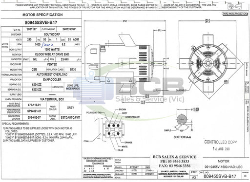 BCB Sales & Service (Vic)Out of stock750 Watts 4Pole (1400rpm) 240V Variable Speed Evaporative Cooler Belt Drive Fan Motor Clockwise, Single Shaft, Vented Motor 5/8" Shaft Resilient ...