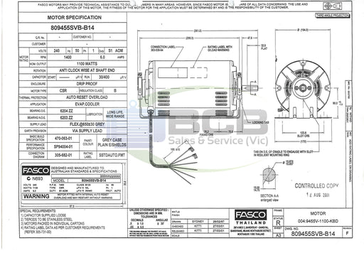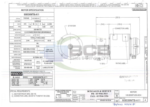 BCB Sales & Service (Vic)In stock450 Watts 6 Pole (900rpm) 240V 2 Speed Condenser Fan Motor Clockwise, Single Shaft, Totally Enclosed Fitted with 4 Mounting Brackets 12 Months War...