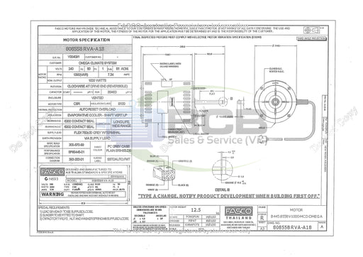 FASCO ( MARATHON ) 80855BPVA-A13 500W BRIVIS DUCTED HEATER FAN MOTOR 4POLE (1330RPM) VARIABLE SPEED