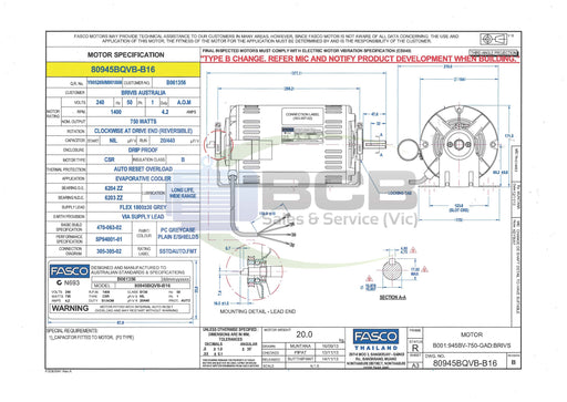 BCB Sales & Service (Vic)Out of stock750 Watts 4Pole (1400rpm) 240V Variable Speed Evaporative Cooler Belt Drive Fan Motor Clockwise, Single Shaft, Vented Motor 5/8" Shaft Resilient ...
