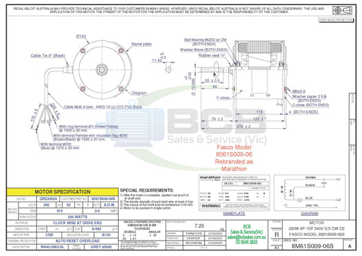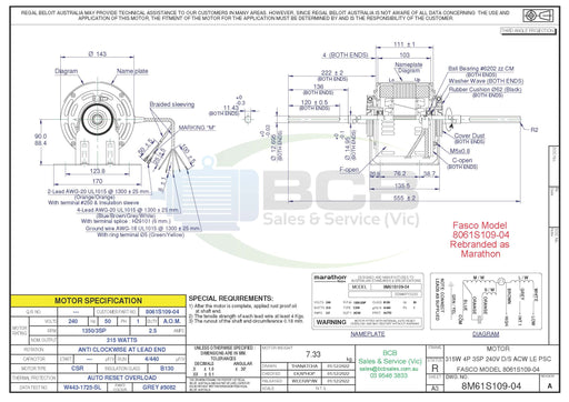 BCB Sales & Service (Vic)Low stock250 Watts 6Pole (900rpm) 240V Single Speed Condenser Fan Motor Reversible, Totally Enclosed, Weatherproof Replaces 61S124-80 12 Months Warranty FRE...