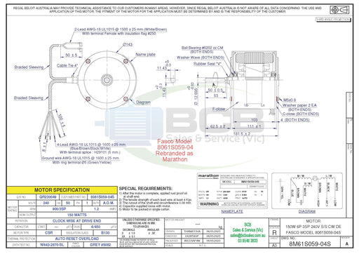 FASCO ( MARATHON ) BRIVIS 80945BQVB-B16 750W EVAPORATIVE COOLER MOTOR 4POLE (1400RPM) VARIABLE SPEED