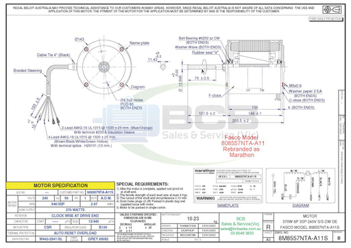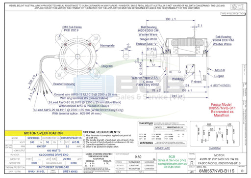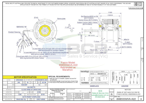 BCB Sales & Service (Vic)In stock250 Watts 6 Pole (900 rpm) 240V Single Speed Condenser Fan Motor Totally Enclosed Weatherproof Fan Motor, Clockwise Rotation 12 Months Warranty FR...