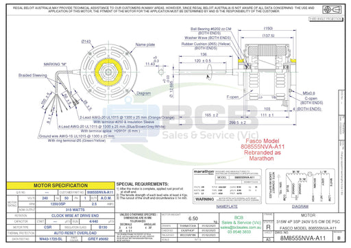 FASCO ( MARATHON ) BRIVIS 80855BNVA-A12 315W EVAPORATIVE COOLER MOTOR 4POLE (1400RPM) VARIABLE SPEED