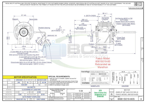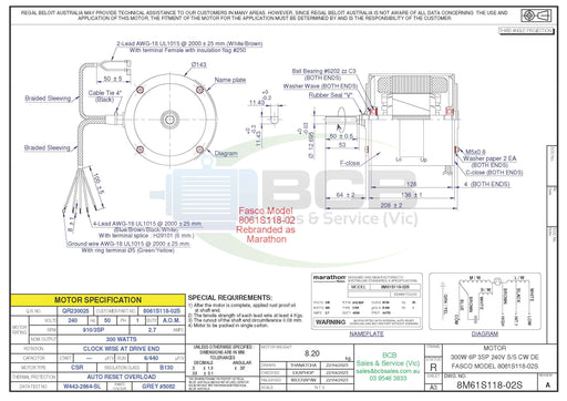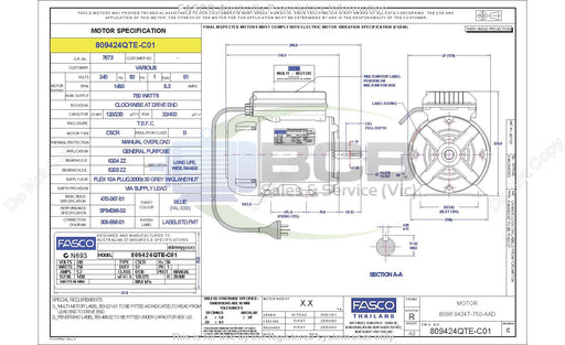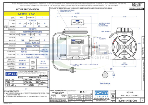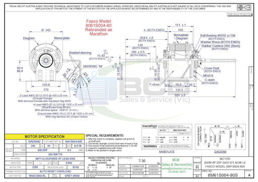 BCB Sales & Service (Vic)Low stock370 Watts 6 Pole (900 rpm) 240V Single Speed AntiClockwise Rotation, Single Shaft, Totally Enclosed Motor has a Modified Drive End for Mounting 12...