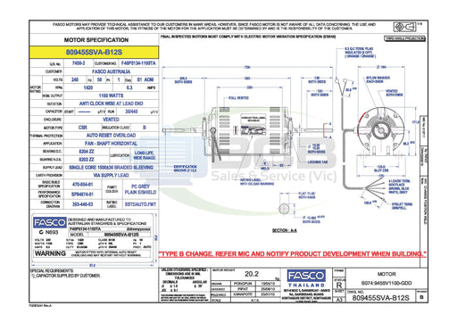 BCB Sales & Service (Vic)Low stock600/750 Watts 4Pole (1350 rpm) 240V Single Speed Ducted Heater Fan Motor Clockwise, Single Shaft, Fully Vented No Rear Sensor 12 Months Warranty F...