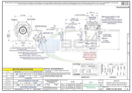 BCB Sales & Service (Vic)Low stock80 Watts 4 Pole (1370 rpm) 2 Speed 240V Double Shaft Fan Motor Anti Clockwise Lead End, Vented 12 Months Warranty FREE SHIPPING ON THIS PRODUCT MOT...