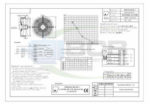 YILIDA AXIAL 30016P SUCTION FAN 240V 300mm 6POLE (900RPM) SINGLE SPEED