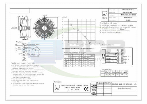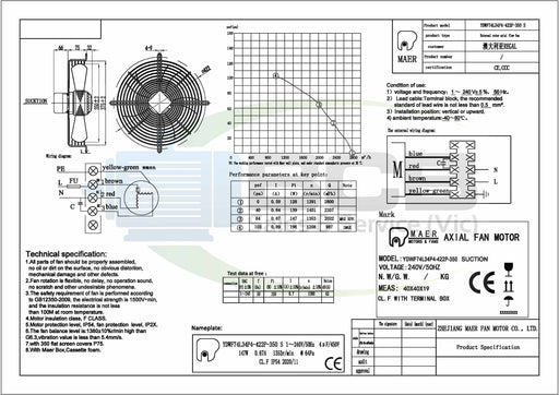 YILIDA AXIAL 35014P SUCTION FAN 240V 350mm 4POLE (1400RPM) SINGLE SPEED