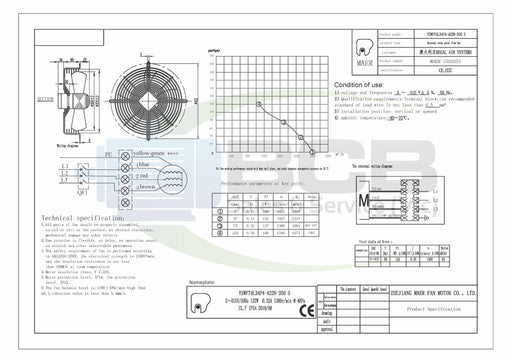 YILIDA AXIAL 35034P SUCTION FAN 415V 350mm 4POLE (1400RPM) SINGLE SPEED