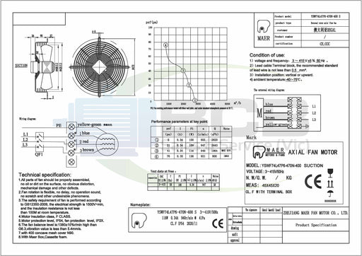 YILIDA AXIAL 40036P SUCTION FAN 415V 400mm 6POLE (900RPM) SINGLE SPEED