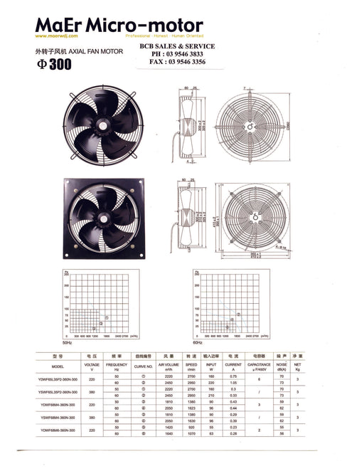 BCB Sales & Service (Vic)In stock300mm Axial Basket Fan Suction Single Phase 4Pole (1400rpm) 240V Single Speed See pdf link for Specifications 12 Months Warranty FREE SHIPPING ON ...