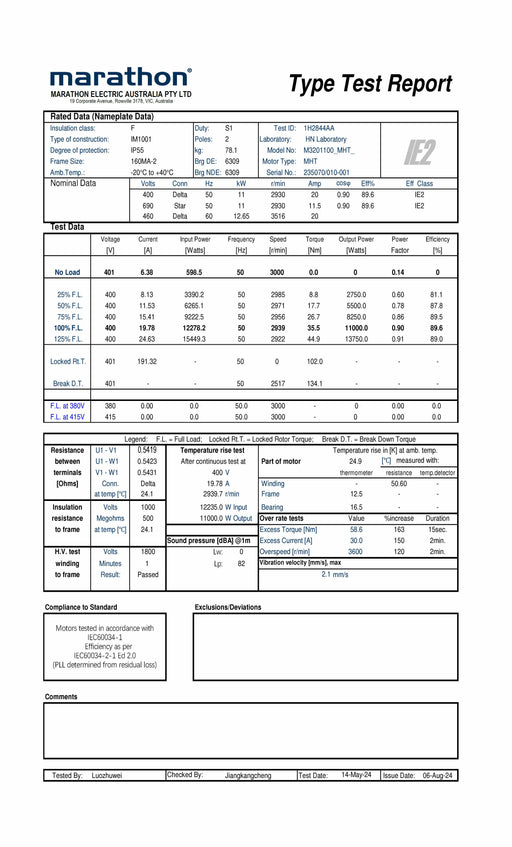BCB Sales & Service (Vic)Out of stock11KW CMG Marathon MHT 3 Phase 415V 6Pole (900RPM) Frame 160L-42Flange Mount Motor Totally Enclosed IP55 Cast Aluminum 2 Year Warranty DUE TO THE MO...