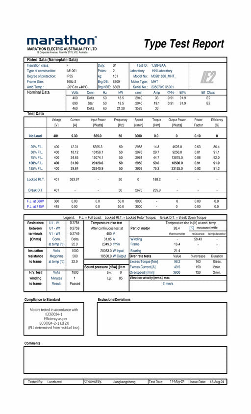 BCB Sales & Service (Vic)Out of stock18.5KW CMG Marathon MHT 3 Phase 415V 2Pole (2900rpm) Frame 160L-42Flange Mount Motor Totally Enclosed Motor IP55 Cast Aluminum 2 Year Warranty DUE ...