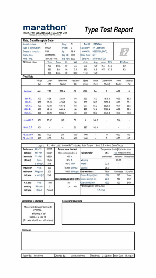 BCB Sales & Service (Vic)Out of stock7.5KW CMG Marathon MHT 3 Phase 415V 6Pole (900RPM) Frame 160M-42Flange Mount Motor Totally Enclosed IP55 Cast Aluminum 2 Year Warranty DUE TO THE M...