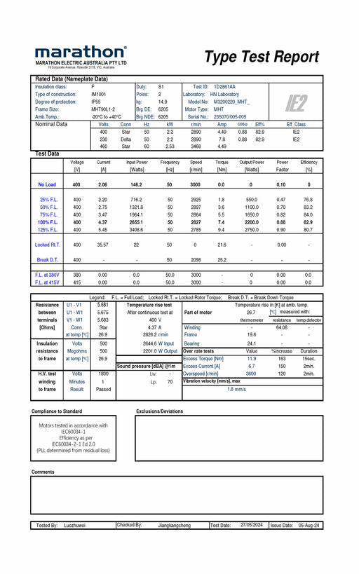 BCB Sales & Service (Vic)In stock1.5KW CMG Marathon MHT 3 Phase 415V 2Pole (2900rpm) Frame 90S-24B14A Flange Mount Motor Totally Enclosed Motor IP55 Cast Aluminium 2 Year Warranty