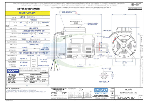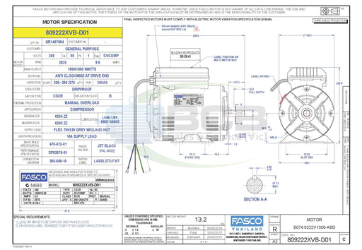 FASCO ( MARATHON ) 809222XVB-D01 1500/1650W 2POLE (2870RPM) COMPRESSOR MOTOR