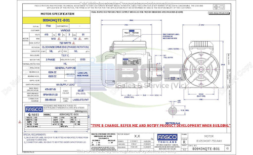 FASCO ( MARATHON ) 809434NTE-B01 370W 4POLE (1410RPM) 3PHASE GENERAL PURPOSE MOTOR B56 FRAME