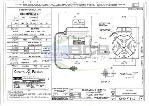 BCB Sales & Service (Vic)Low stock550 Watts 4Pole (1450rpm) 240V General Purpose Motor B56 Frame Reversible, Single Shaft, Totally Enclosed, Fan Cooled Capacitor Start/Capacitor Run...