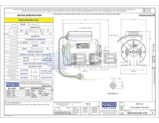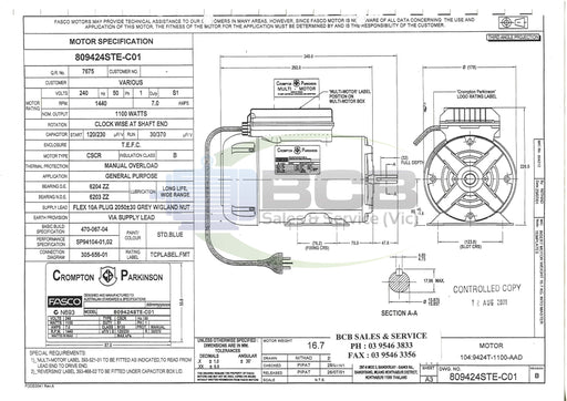 BCB Sales & Service (Vic)Low stock750 Watts 4 Pole (1420 rpm) 240V Single Speed Anti-Clockwise Rotation, Single Shaft, Totally Enclosed Motor has a Modified Drive End for Mounting ...