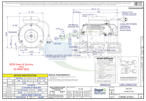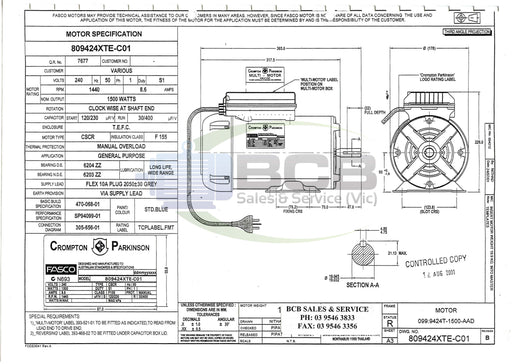 BCB Sales & Service (Vic)In stock1100 Watts 4Pole (1440rpm) 240V General Purpose Motor B56 Frame Reversible, Single Shaft, Totally Enclosed, Fan Cooled Capacitor Start/Capacitor Ru...