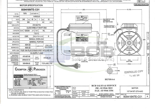 BCB Sales & Service (Vic)Low stock370 Watts 6Pole (960rpm) 240V General Purpose Motor B56 Frame Reversible, Single Shaft, Totally Enclosed, Fan Cooled Capacitor Start 5/8" Shaft, Fo...