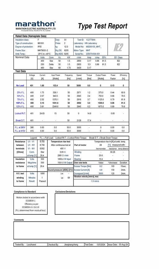 BCB Sales & Service (Vic)In stock1.5KW CMG Marathon MHT 3 Phase 415V 2Pole (2900rpm) Frame 90S-24Flange Mount Motor Totally Enclosed Motor IP55 Cast Aluminium 2 Year Warranty
