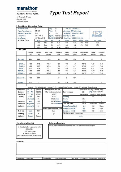 BCB Sales & Service (Vic)In stock1.1KW CMG Marathon MHT 3 Phase 415V 6Pole (900RPM) Frame 90L-24Flange Mount Motor Totally Enclosed IP55 Cast Aluminum 2 Year Warranty