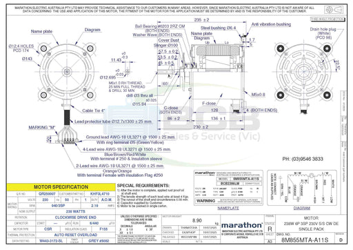 BCB Sales & Service (Vic)In stock238 Watts 6Pole (940/880/820rpm) 3 Speed 1.43Amps Temperzone Motor Clockwise, Totally Enclosed, Single Shaft, fitted with 4 Welded Mounting Bracket...